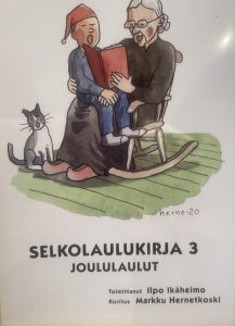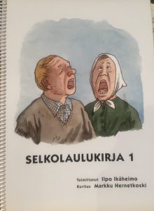 Selkolaulukirjan idea on yksinkertainen ja sitä on helppo käyttää. Kirjassa on jokaisella sivulla yksi laulu ja laulua varten piirretty kuva. Teksti on isokokoista joten sitä on helppo lukea.